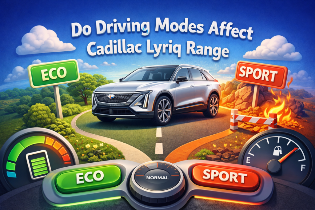 So, do the driving modes in Cadillac Lyriq offer different ranges or battery usages? Technically, yes—but indirectly. Driving modes don’t change the battery itself; instead, they influence how quickly energy is consumed. This means range differences depend heavily on how you drive within each mode.